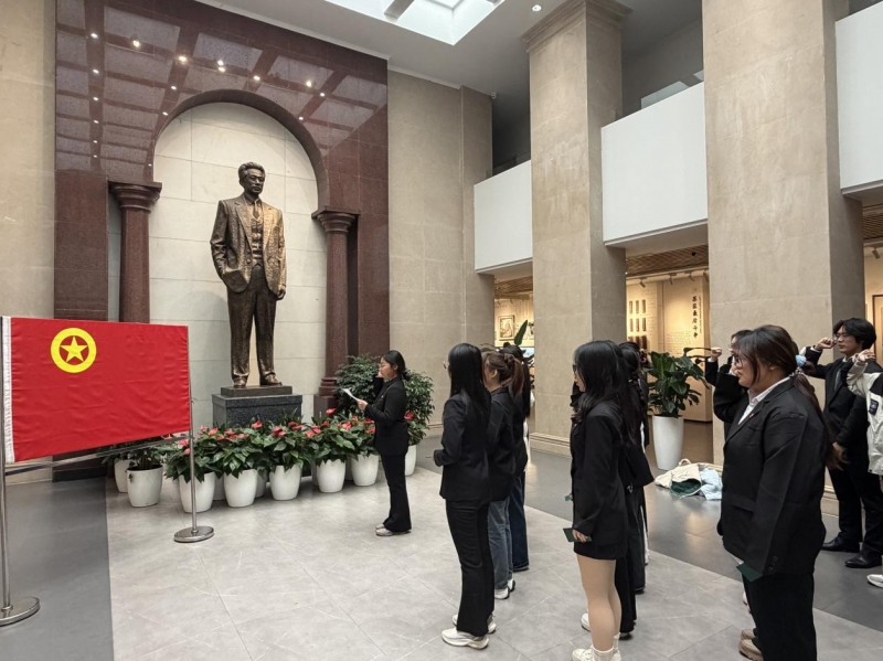 随后,师生一行前往瞿秋白纪念馆。在这里,同学们通过珍贵的历史资料与实物陈列,深入了解了瞿秋白同志的革命生涯与精神追求,深刻感受到共产党人坚定的理想信念与无私的奉献精神。在庄严肃穆的氛围中,75名新团员面向团旗,高举右拳,庄严宣誓。铿锵的誓言在纪念馆内回荡,标志着又一批青年正式加入共青团,肩负起时代赋予的责任与使命。